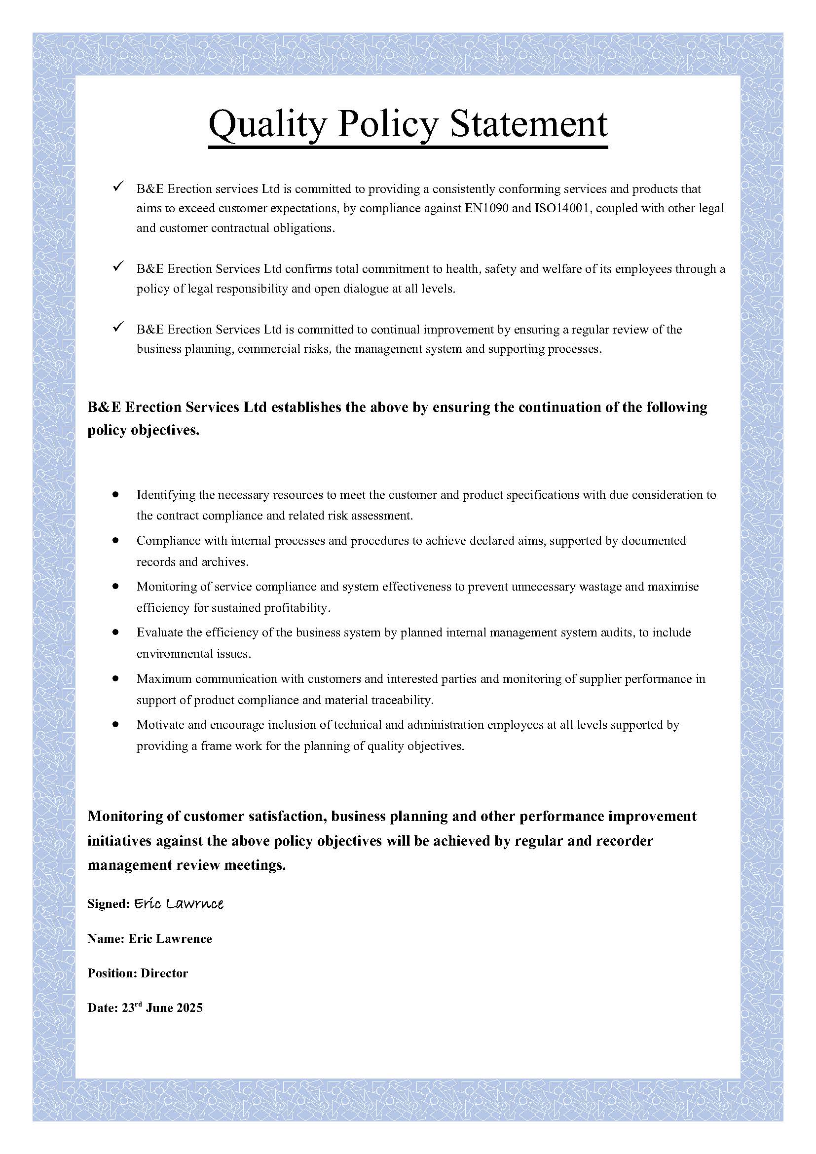 Please find a copy of our T’s & C’s, standard certificates and policy statements Below:
